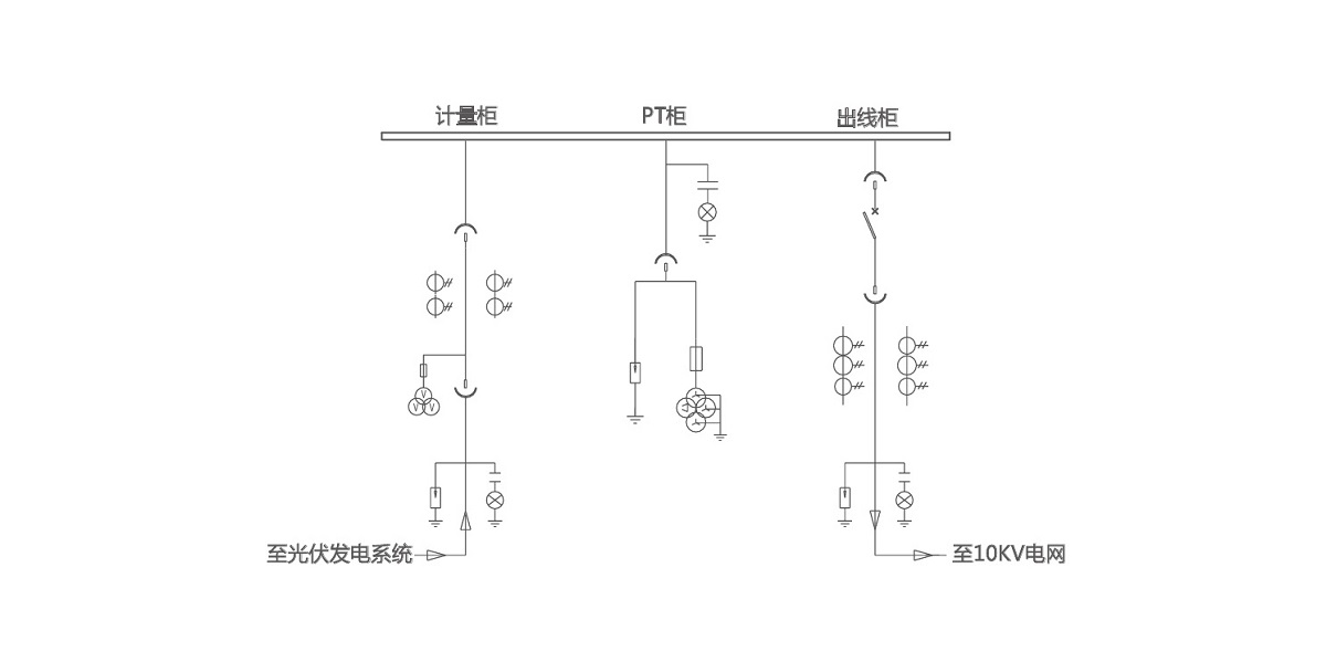 聚輝能源自主研發(fā)的分布式光伏電站電網(wǎng)接入系統(tǒng),將成套一次開關(guān)設(shè)備和綜合自動化系統(tǒng)進(jìn)行集成,一次回路包含:進(jìn)線柜、PT柜、計量柜、出線柜;二次控制回路包含:數(shù)據(jù)采集、電能質(zhì)量