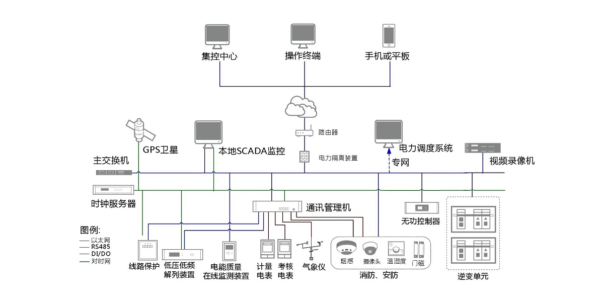 該系統(tǒng)嚴(yán)格按照國家電網(wǎng)分布式接入標(biāo)準(zhǔn)及地方電網(wǎng)要求設(shè)計,適用于10~35kV 電壓等級并網(wǎng)的分布式光伏電站,滿足不同地區(qū)電網(wǎng)調(diào)度的需求。